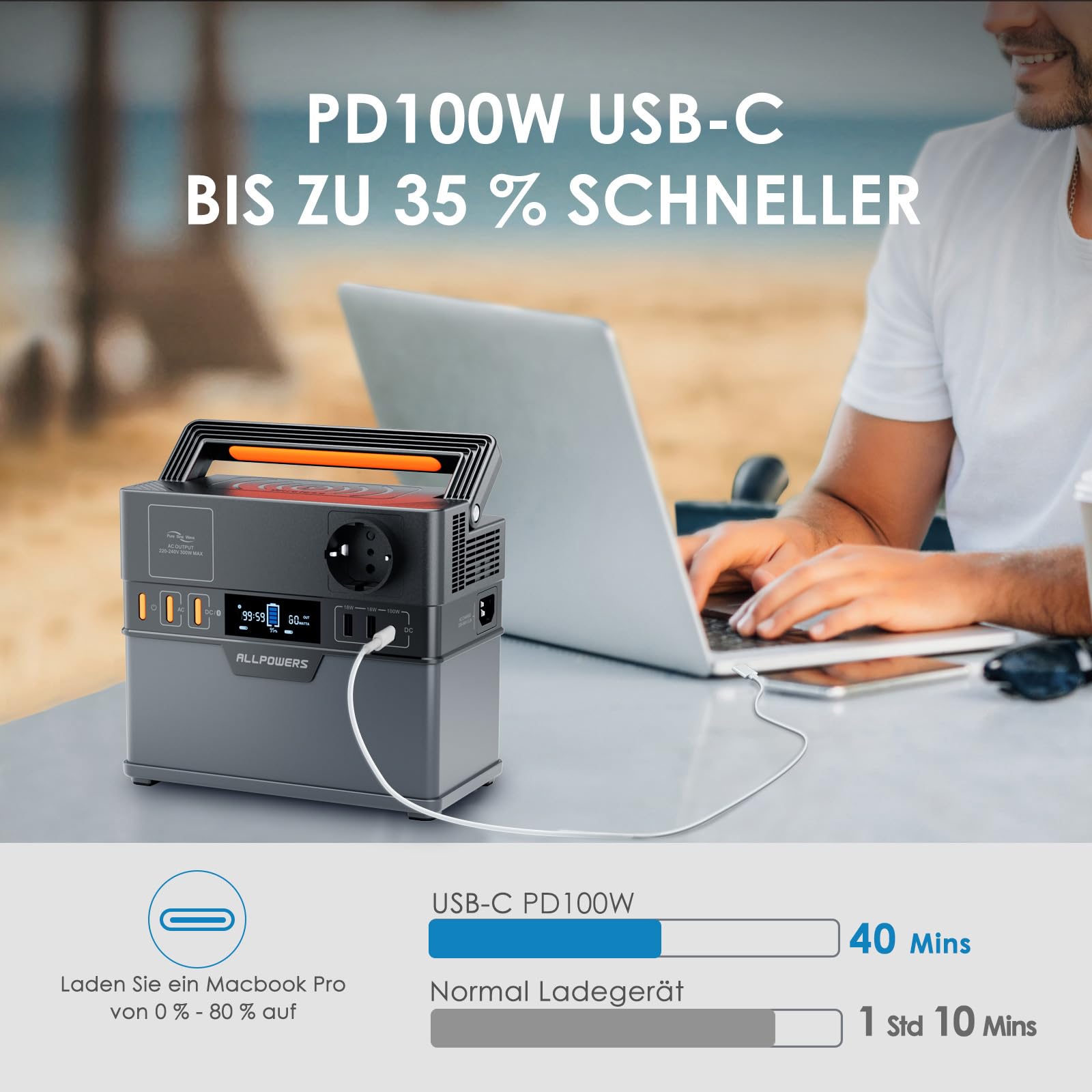 ALLPOWERS S300 PLUS Tragbarer Powerstation 288Wh Mobile Stromversorgung Generatoren 300W Batterie Mobiler Stromspeicher für Garten Party Reise Camping Wohnmobil Notfall